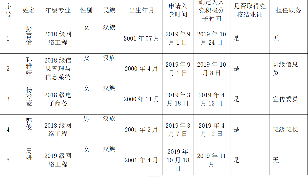草榴社区 党委 网络工程专业本科党支部关于确定彭菁怡等5名同志为发展对象的公示 经草榴社区 网络工程专业本科党支部培养考察,在听取培养联系人、党员和群众意见的基础上,经支部委员会讨论同意,报...