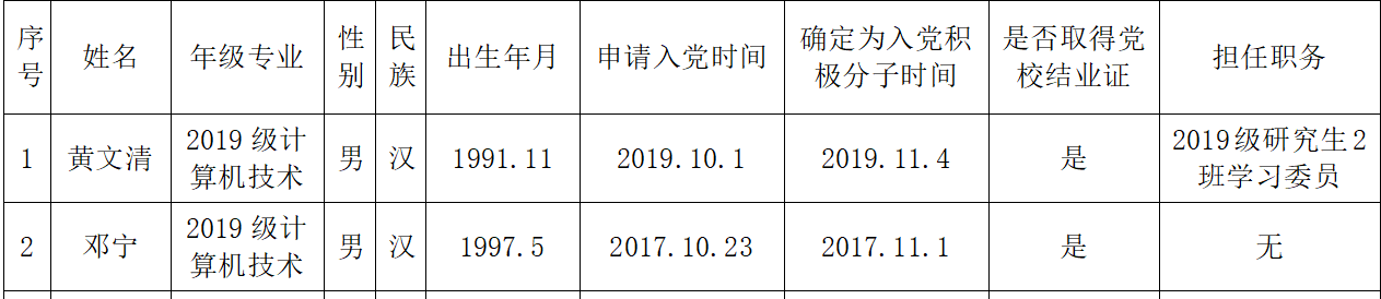 草榴社区 党委研究生五党支部关于确定黄文清等2名同志为发展对象的公示经草榴社区 研究生五党支部培养考察,在听取培养联系人、党员和群众意见的基础上,经支委会讨论,确定黄文清等2同志为发展对象。现根据学...