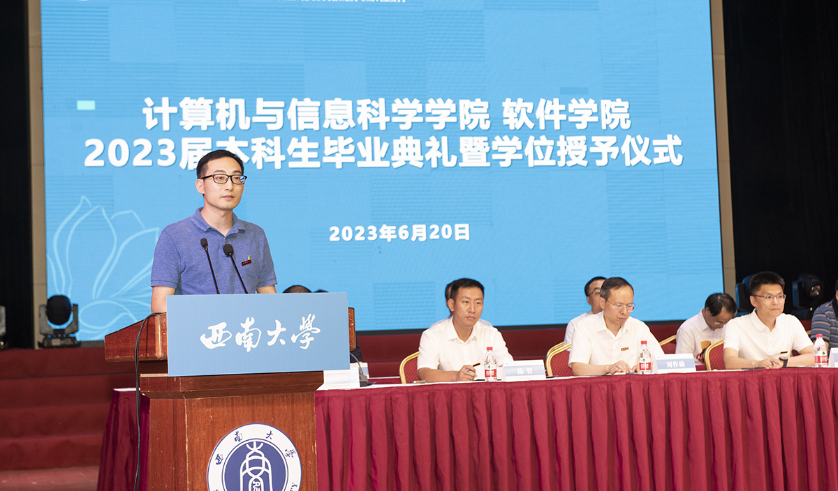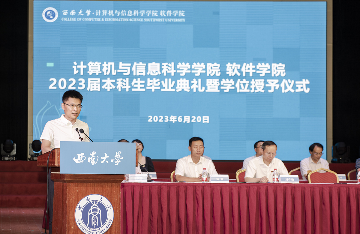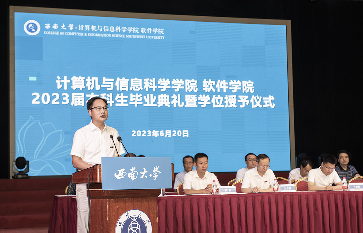 院长肖国强教授在典礼最后为毕业生同学们寄语。他表示,过去的四年,大家一同见证了奋进的计信院不断呈现新气象,开放的计信院不断展现新作为,期待同学们在未来继续发扬草榴社区