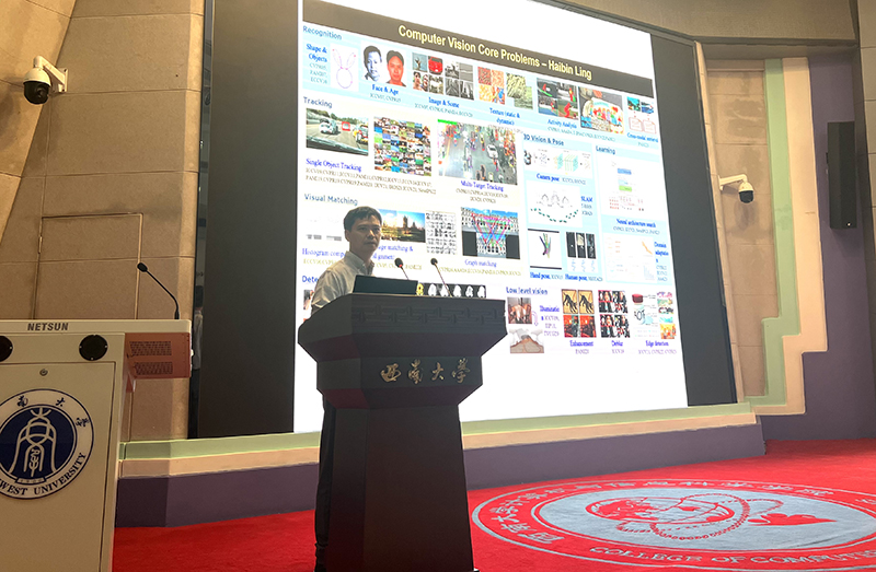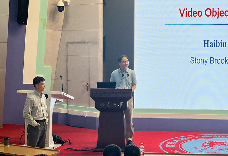 会上,肖国强院长致欢迎辞,介绍了凌海滨教授的相关情况。凌海滨教授是纽约州立大学石溪分校计算机科学系帝国创新教授、IEEE Fellow。研究方向包括计算机视觉、增强现实、医学图像分析、机器学习和人机交互。现担任IEEE Trans. on Pattern Analysis and Machine Intelligence (PAMI)、IEEE Trans. on Visualization and Computer Graphics (TVCG)、Computer Vision and Image Understanding (CVIU)和Pattern Recognition (PR)编委,并多次担任CVPR、ICCV、ECCV和WACV的领域主席。他曾获得ACM UIST (2003)的最佳学生论文奖、IEEE VR (2021)的最佳期刊论文奖、NSF CAREER奖(2014)、Yahoo Faculty Research and Engagement奖(2019)和Amazon Machine Learning Research奖(2019)