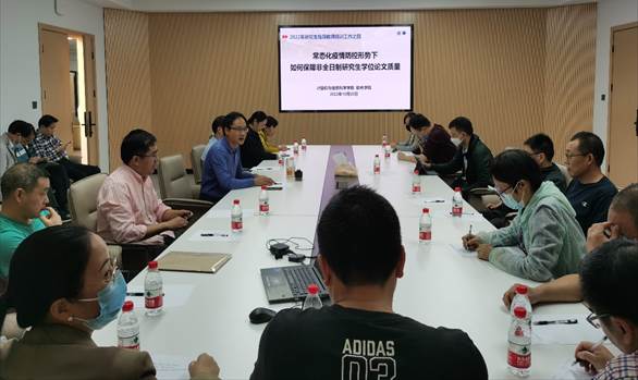 10月20日,肖国强院长主持召开了专题研讨会《常态化疫情防控形势下,如何保障非全日制研究生学位论文质量》。肖国强院长对比了疫情前后非全日制硕士研究生培养情况的变化,各位导师就如何保障非全日制研究生学位论文质量积极发言献策。最后,肖国强院长对本次研讨会做了总结。