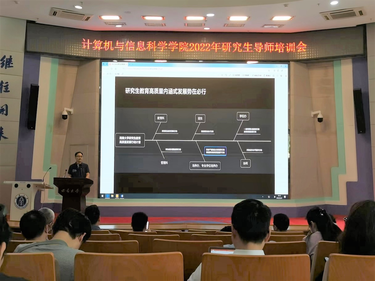 4月22日,肖国强院长就《研究生学位论文质量提升举措,良好导学关系构建》做了专题讲座。肖国强院长强调以制度化、规范化和精品化管理模式为抓手,全面提升研究生培养关键环节及学位论文质量。结合学校最新政策文件、草榴社区