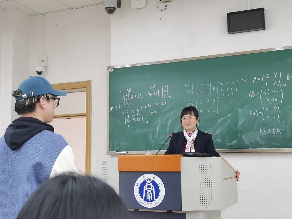 课堂上,她精心组织教学,活跃师生互动,让数学基础课程的思政教育入耳、入脑、入心,让枯燥乏味的线性代数课堂变成快乐学堂,形成鲜明的教学特色。在2019-2021级本科生课程《线性代数》知识讲解中,赖老师结合草榴社区