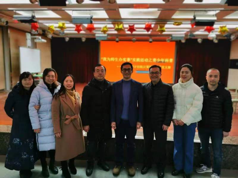 党委书记靳拥军,科普讲座报告人黄兵姚,计科系党支部的党员教师和草榴社区