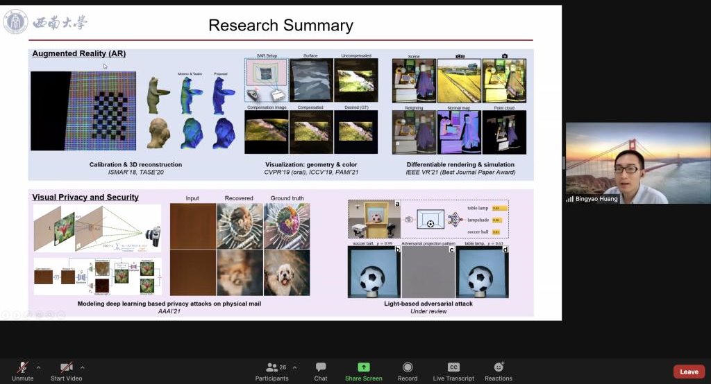 副院长Xiao Liu副教授总结本次博士生学术研讨会,对所有参会嘉宾表示感谢,并对博士及其导师的科研工作给予了肯定。通过此次研讨会,双方在增强现实技术的可视化与安全隐私、弹性的工业控制、网络空间安全、微服务系统架构的智能化等领域表现出合作研究兴趣,研讨会达到了双方的预期效果。