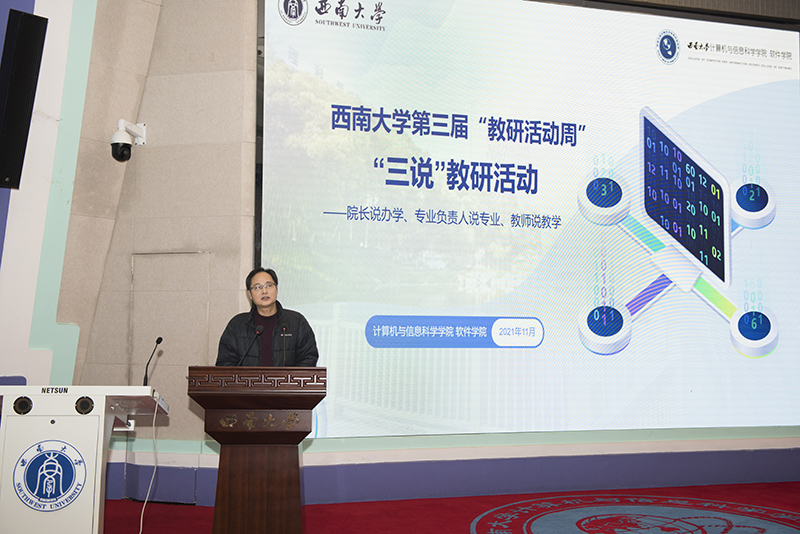 第三届“教研活动周”实施计划》等文件要求,我院于2021年11月19日下午14:30,在25教1楼报告厅召开全体教职工大会,围绕“院长说办学、专业负责人说专业、教师说教学”的主题开展了教育教学“三说”活动。活动由草榴社区