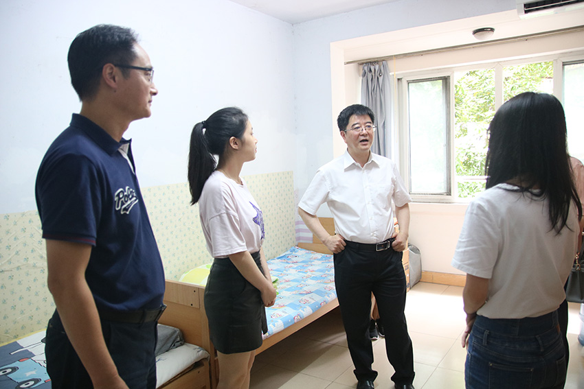 负责人陪同下,深入我院学生寝室看望慰问毕业年级研究生,对学生就业和生活进行了关心和慰问。