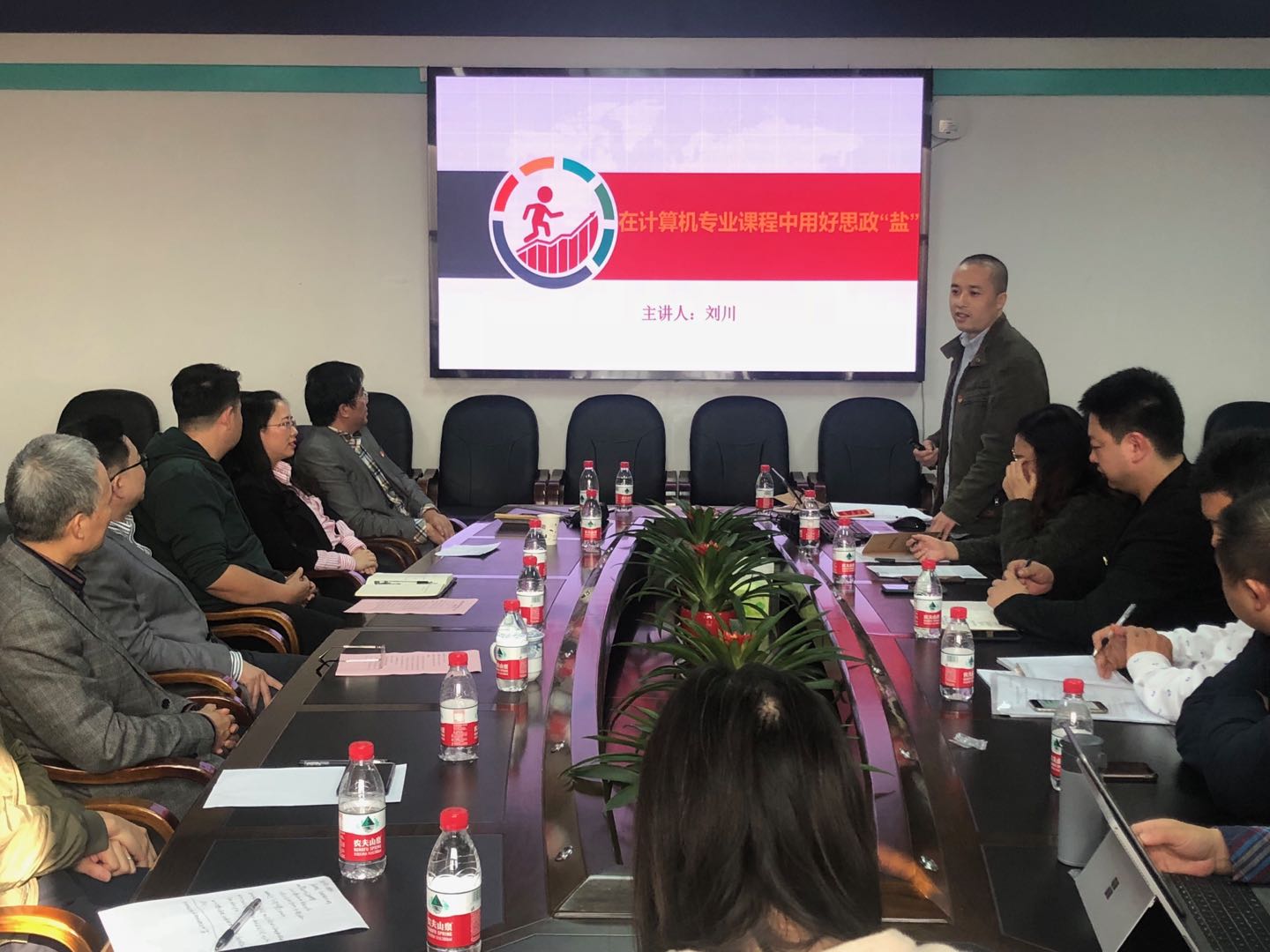 团队共赴三建乡开展信息扶贫的见闻与体会。刘川同志以《在计算机专业课程中用好思政“盐”》为主题,讲述了专业课教师用好思政“盐”的重要性,并分享了自己在操作系统专业课教学中实践课程思政的三点做法。
