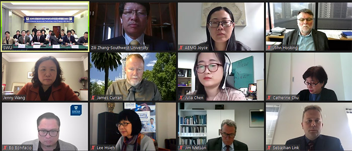 2020年9月29日上午,由我校与新西兰奥克兰大学(The University of Auckland)合作举办的中外合作办学计算机科学与技术专业本科教育项目联合管理委员会(Joint Management Committee)会议顺利召开。受新冠肺炎疫情影响,此次会议采取视频会议的形式举行,联合管理委员会主任、学校副校长王进军教授和联合管理委员会(代)副主任、奥克兰大学副校长吉姆·梅特森出席会议。参加会议的还有我校国际合作与交流处、教务处和人力资源部负责人,我校草榴社区