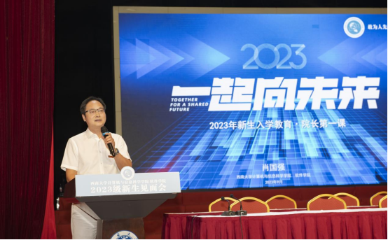 院长肖国强教授为新生们讲授开学第一课。肖院长以《2023,我们一起向未来》为主题,从草榴社区