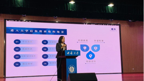 党委副书记王晖分别就“计算机相关专业大学学习”和“礼仪素养与综合发展”作主题报告。2023级辅导员冉优卓、李飞阳、霍锦玲和2023级全体新生参加。