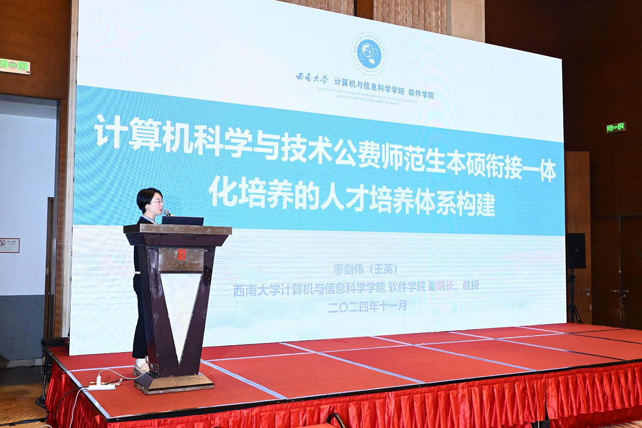 王英博士就人工智能赋能教育、地方师范院校人工智能+多学科交叉复合的新工科人才培养、计算机专业师范生人才培养质量体系建设和免费师范生本硕一体化培养进行大会报告。