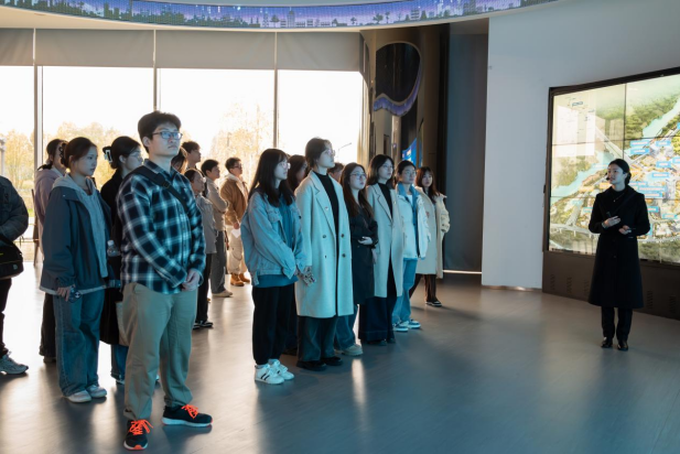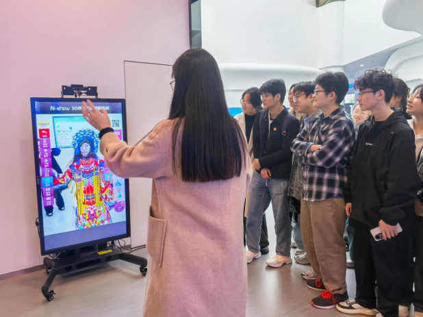 随后,学员们来到仙桃国际大数据谷展示体验中心,讲解员首先介绍了仙桃国际大数据谷的整体概况。接着,讲解员带领学员们深入了解了大数据的核心技术。从数据采集、存储、处理到分析应用,每一个环节都进行了详尽的阐述。特别是在数据可视化方面,通过直观的图表和动态演示,让学员们能够清晰地看到数据如何被转化为有价值的洞察,进而支持决策和优化业务流程。最后,同学们亲身体验了展馆中可穿戴智能设备、红外传感器、智能语音机器人等多种智能设施,全方位感受科技的魅力。