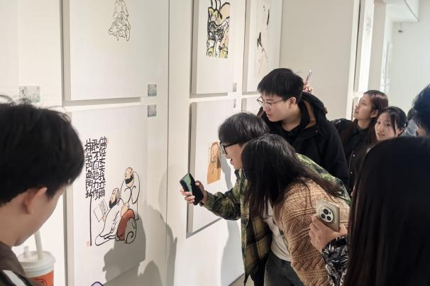 雕塑系诸多作品集中亮相。李馆长为同学们讲解每一件作品背后的故事,引导同学们分享个人审美感受,同学们沉浸其中,或驻足凝思,或低语交流,享受这惬意的艺术时光。来到展馆二楼,无数国画映入同学们的眼帘,山水、花鸟、人像、诗词......饶有意趣的作品透露出山野情趣,引得同学们赞美与感叹;画上的题字也引得同学们讨论纷纷,笑语连连。
