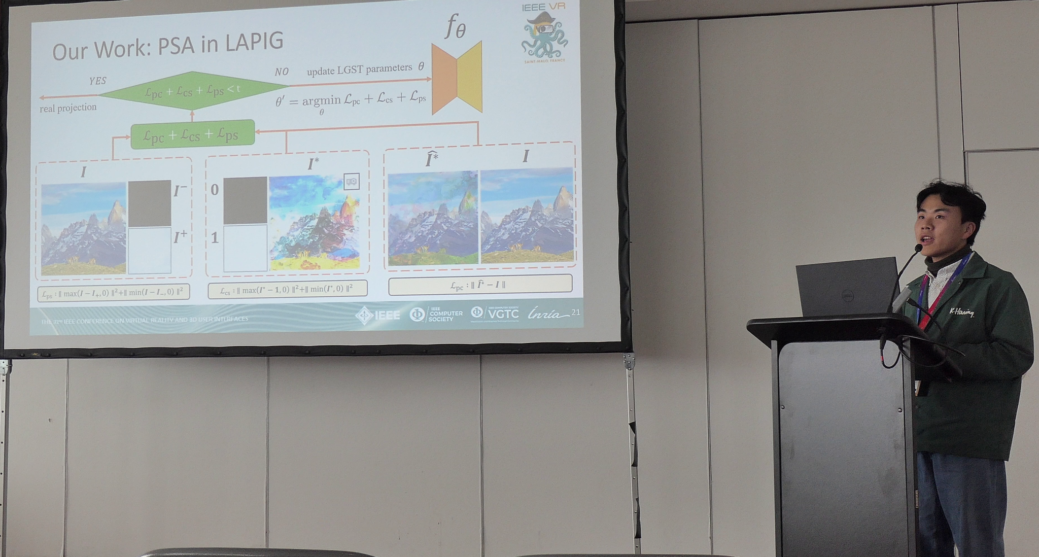 图3:研究生李计江在IEEE VR 2025作论文口头报告
