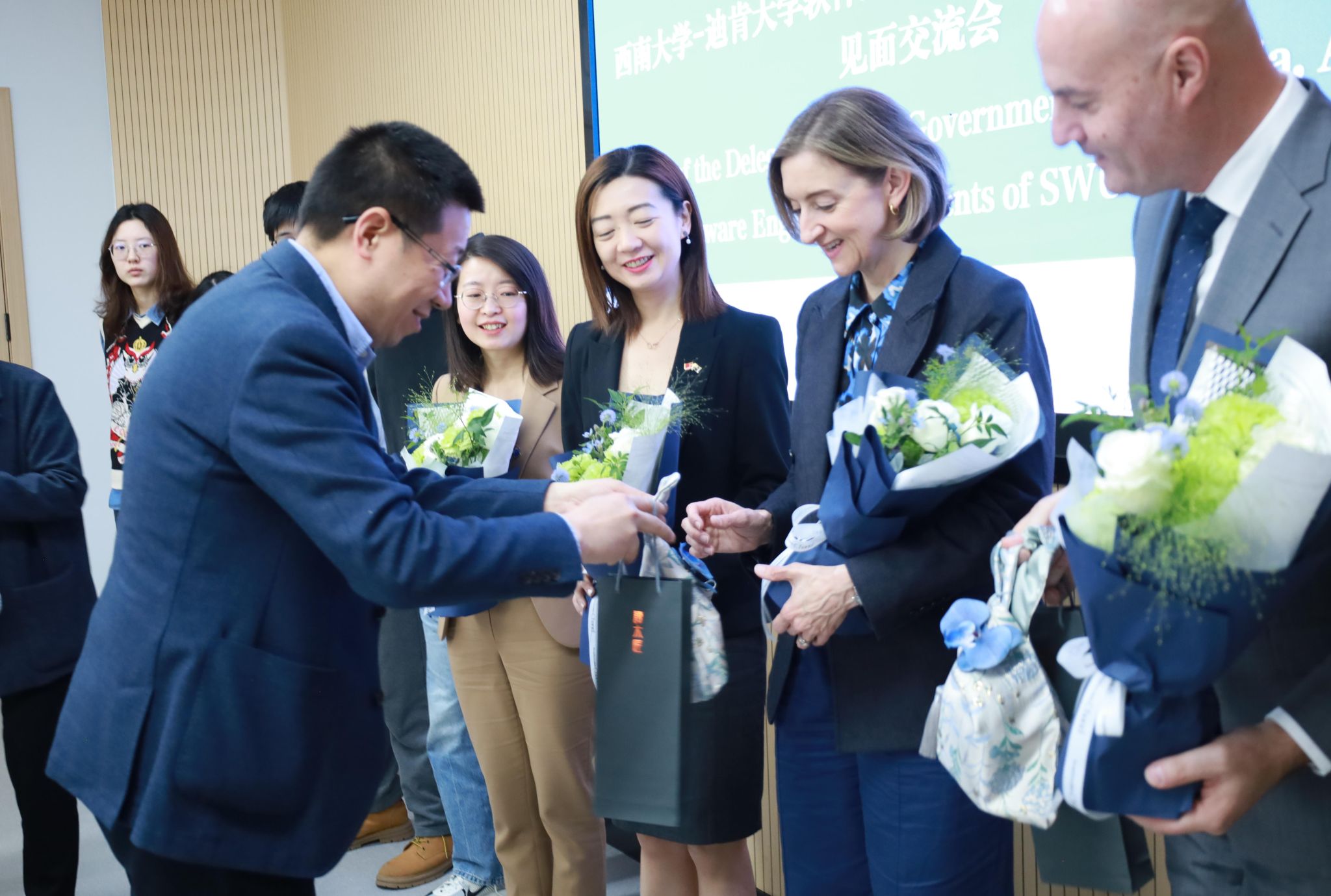 赠送了西大文创纪念品。交流会圆满结束后,全体参会人员合影留念。此次维多利亚州贸易投资成都代表处的到访搭建起了良好的沟通桥梁,让学生们近距离了解澳大利亚教育体系、文化魅力与行业前沿动态,也为他们的未来学习和职业规划开拓了新思路。