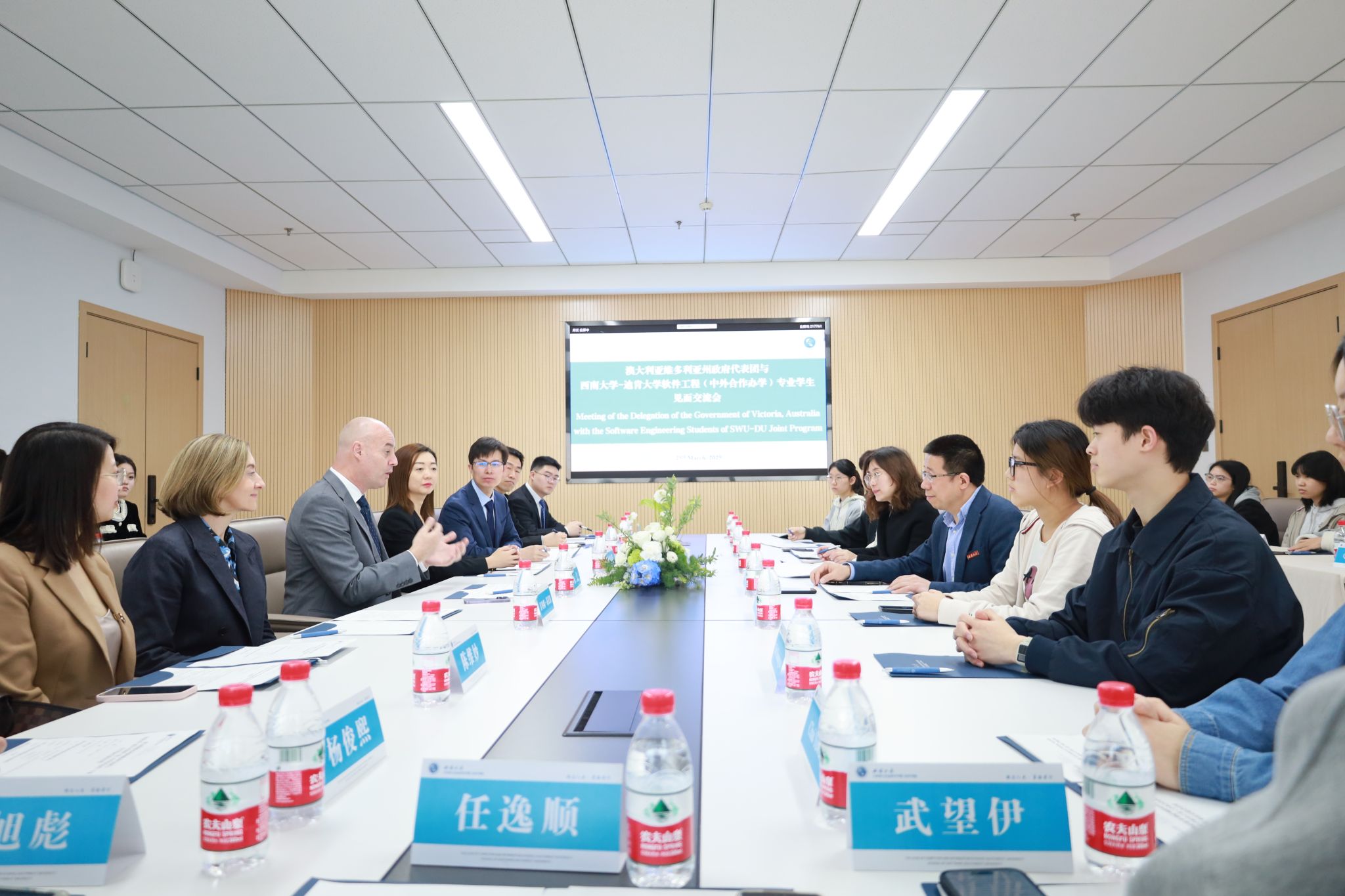 软件工程(中外合作办学)专业学生见面交流会在25教1314会议室举行。澳大利亚维多利亚州贸易投资成都代表处驻中华区特派专员石文(Brett Stevens),政府贸易、全球参与及国际教育事务部执行主任菲奥娜·莱托斯(Fiona Letos),大中华区副专员杜纬遥,教育服务主任陈维妙;中华人民共和国共和国驻墨尔本总领事馆李林泽副领事;草榴社区