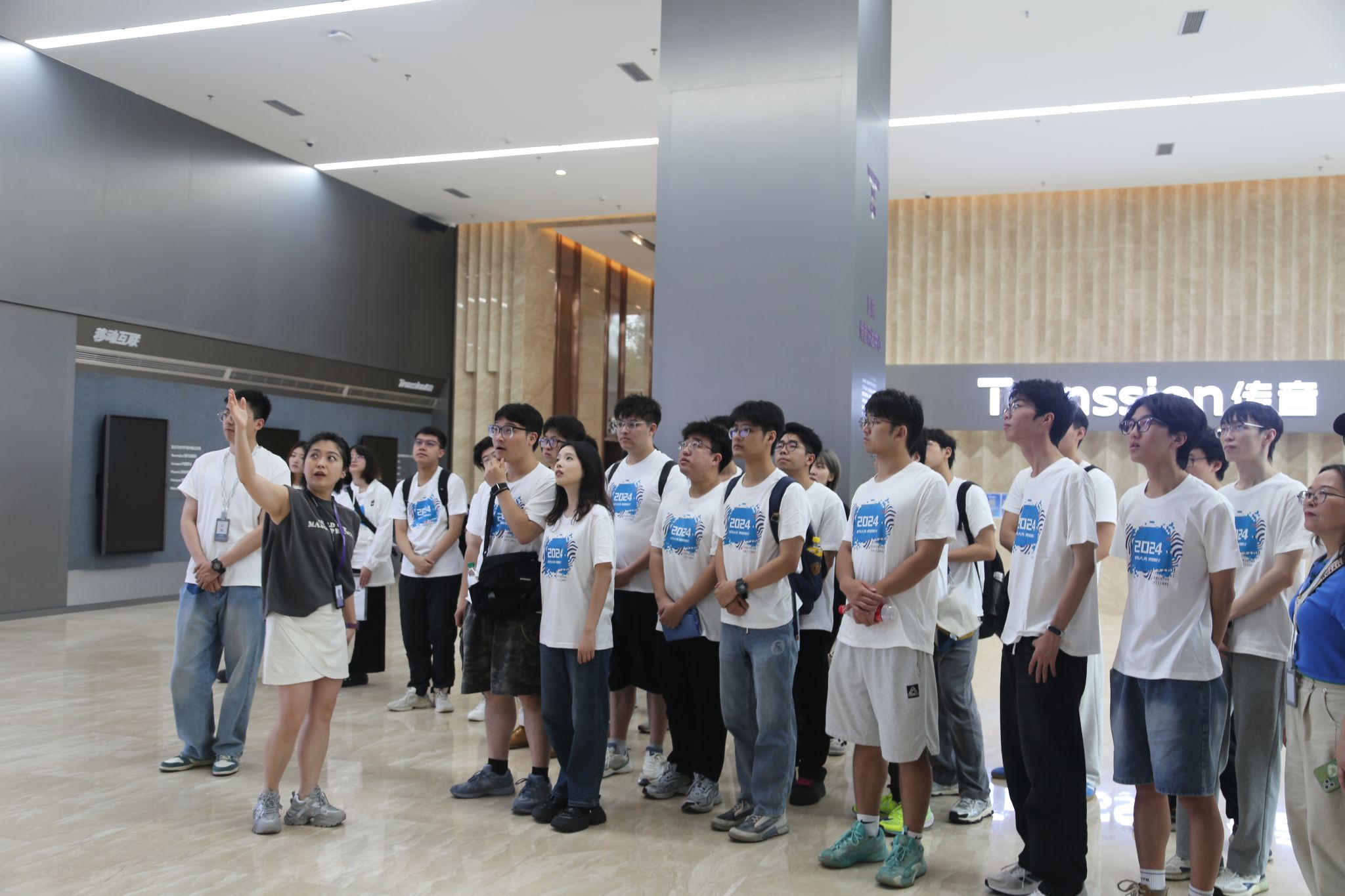 重庆传音工作人员带领师生参观了公司展厅、办公区及研发实验室,并为同学们介绍了公司的发展历程和创新成果。同学们还参观了充满活力氛围的健身房和休闲书吧,感受到了传音灵活、开放、绿色、舒适的办公环境。