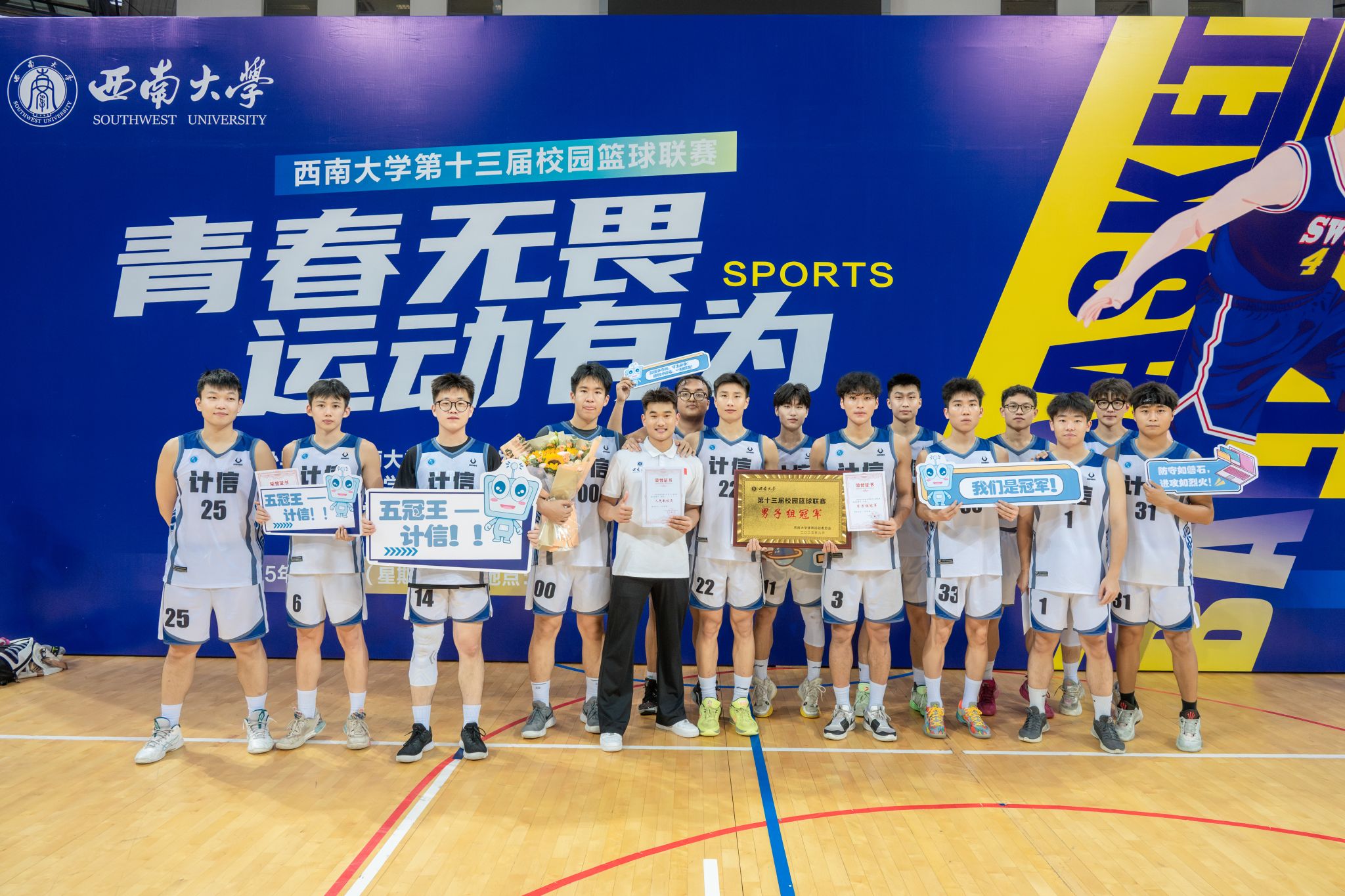 党委书记孙楚航、副书记王晖、副院长李娅、全体辅导员老师以及200余名同学们组成的“计信啦啦队”举起KT板,拼出“5TH CHAMPION”的图案。这一刻,篮球与计信交织,汗水与智慧共鸣,草榴社区