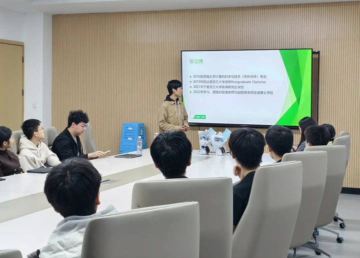 在1320会议室成功举办2025年第2期“引航U声”优秀院友分享沙龙,主题为“从零到IT博士”。活动邀请了计算机科学与技术(中外)专业院友、奥克兰大学在读博士生张立博和王钟声担任分享嘉宾,分享成长经历与科研心得。