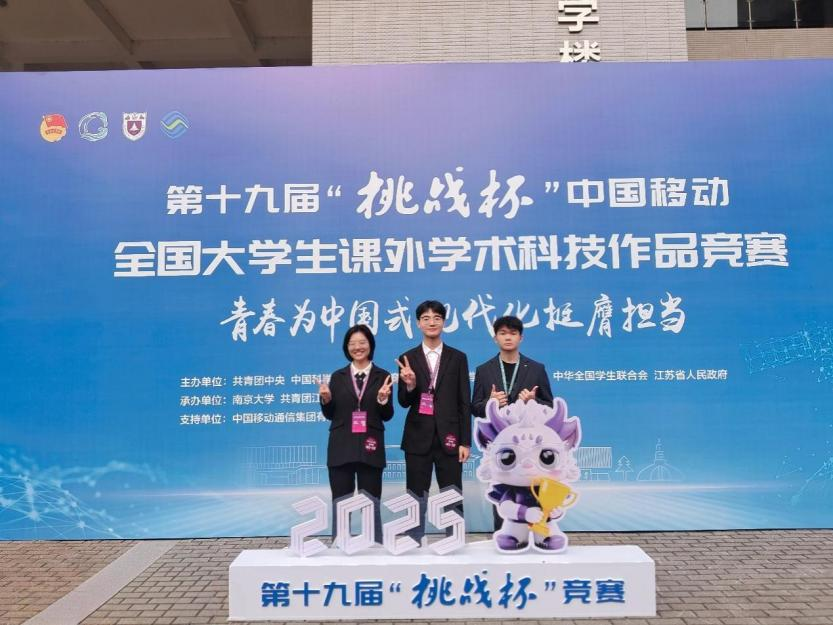 图6:胡婷、王金洋、胡继鸿同学在南京决赛现场