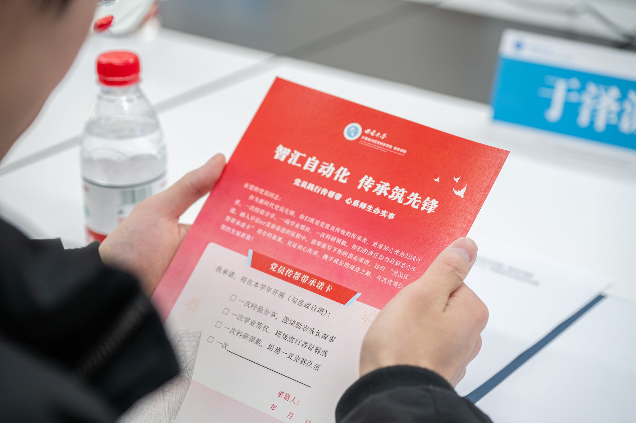 会议尾声,支部全体党员郑重填写《党员传帮带承诺卡》,表示将传承支部“老带新、传帮带”的优良作风,坚守“为师生办实事”的初心使命,切实把学习成效转化为服务师生的具体行动。