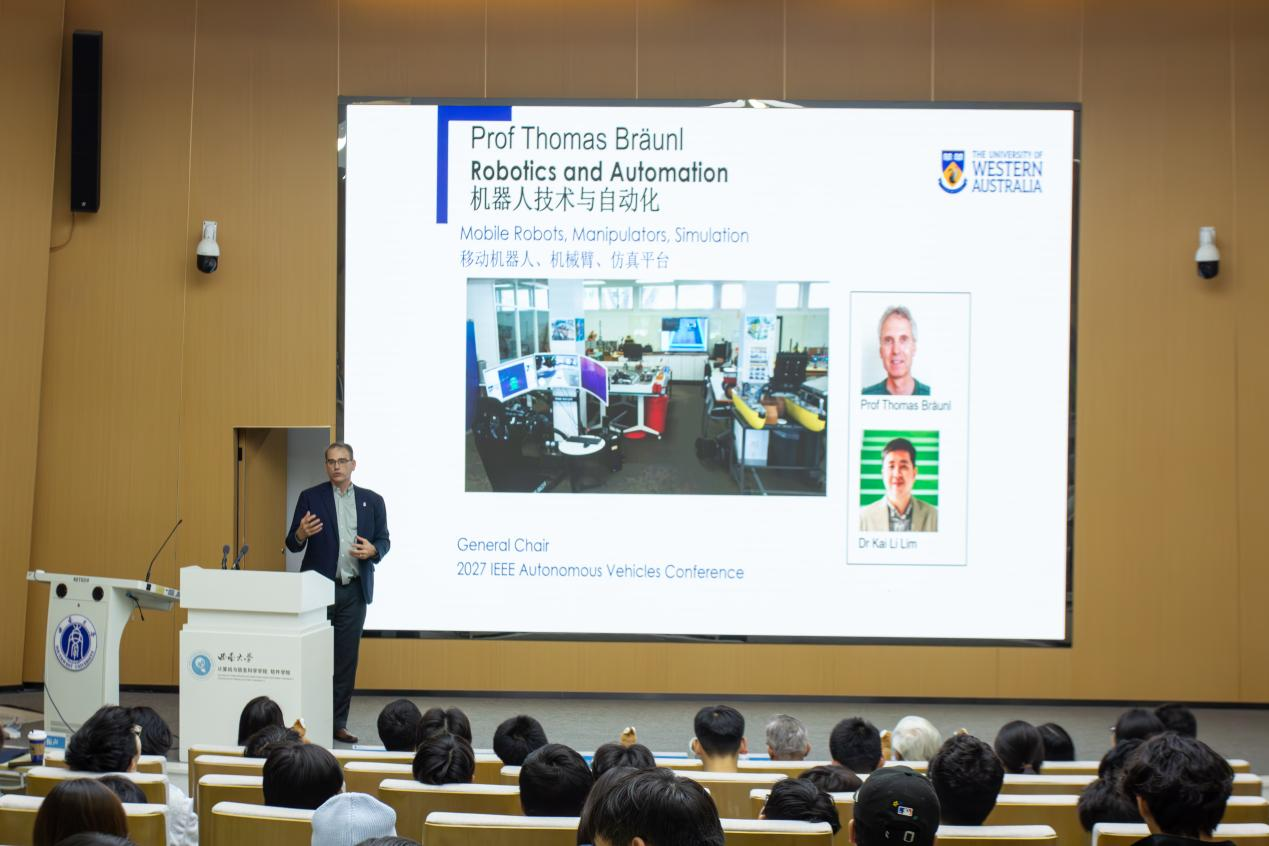2025年11月15日,西澳大学工学部部长TimSercombe教授来院与2025级自动化(中外合作办学)专业学生见面交流。见面会在25教一楼报告厅举行。西澳大学雷文教授、Gregory Crebbin教授、澳大利亚未来教育研究院代表、草榴社区