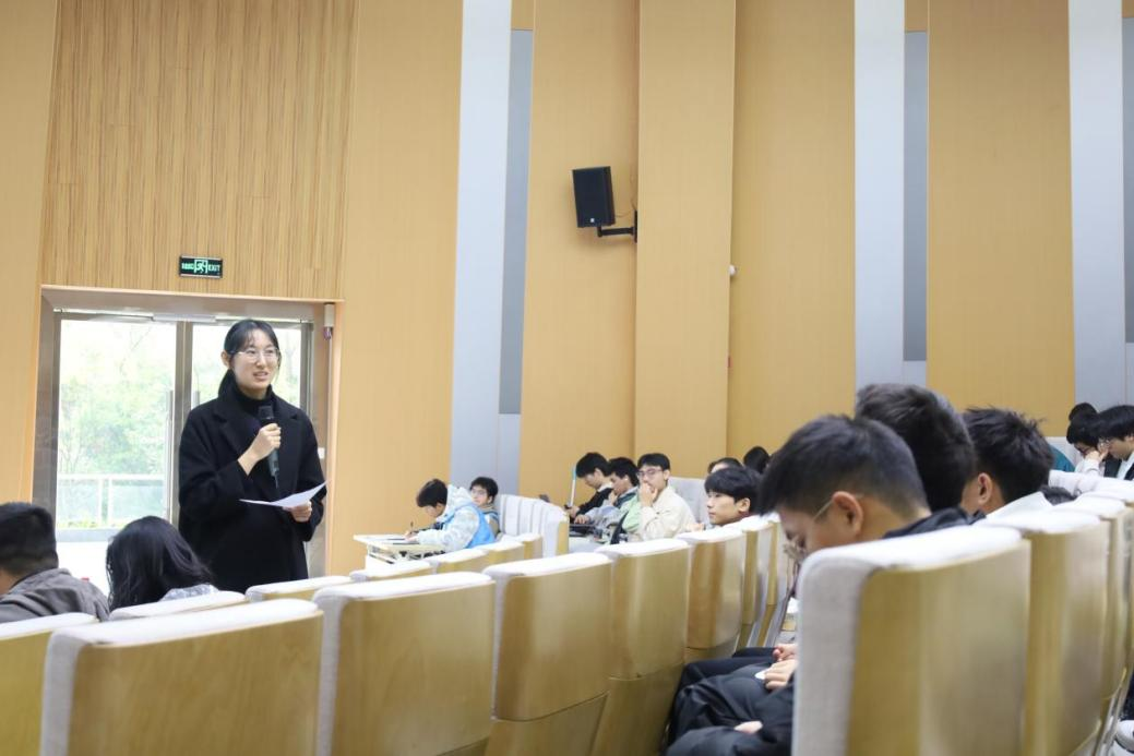 随着主持人刘屹民同学的开场,比赛正式拉开帷幕。本次比赛从全院30余份参赛作品中选出6位选手进入决赛,参赛选手围绕“校园安全”主题依次进行“校园安全创意班级活动规划”可行性分析、“校园安全知识”宣讲。在活动规划环节,参赛选手聚焦反诈防骗、实验室安全、校园火灾逃生等高校安全关键领域深挖活动开展的可能性,通过多样化的互动增强参与感。在安全宣讲环节,参赛选手创新采用游戏式对话、AI赋能演示等形式,结合真实案例素材,深入拆解安全风险点,细致讲解防范方法与应急逃生技巧,将专业安全知识与校园生活场景深度融合,为现场观众呈现了一场兼具知识性与趣味性的安全盛宴。