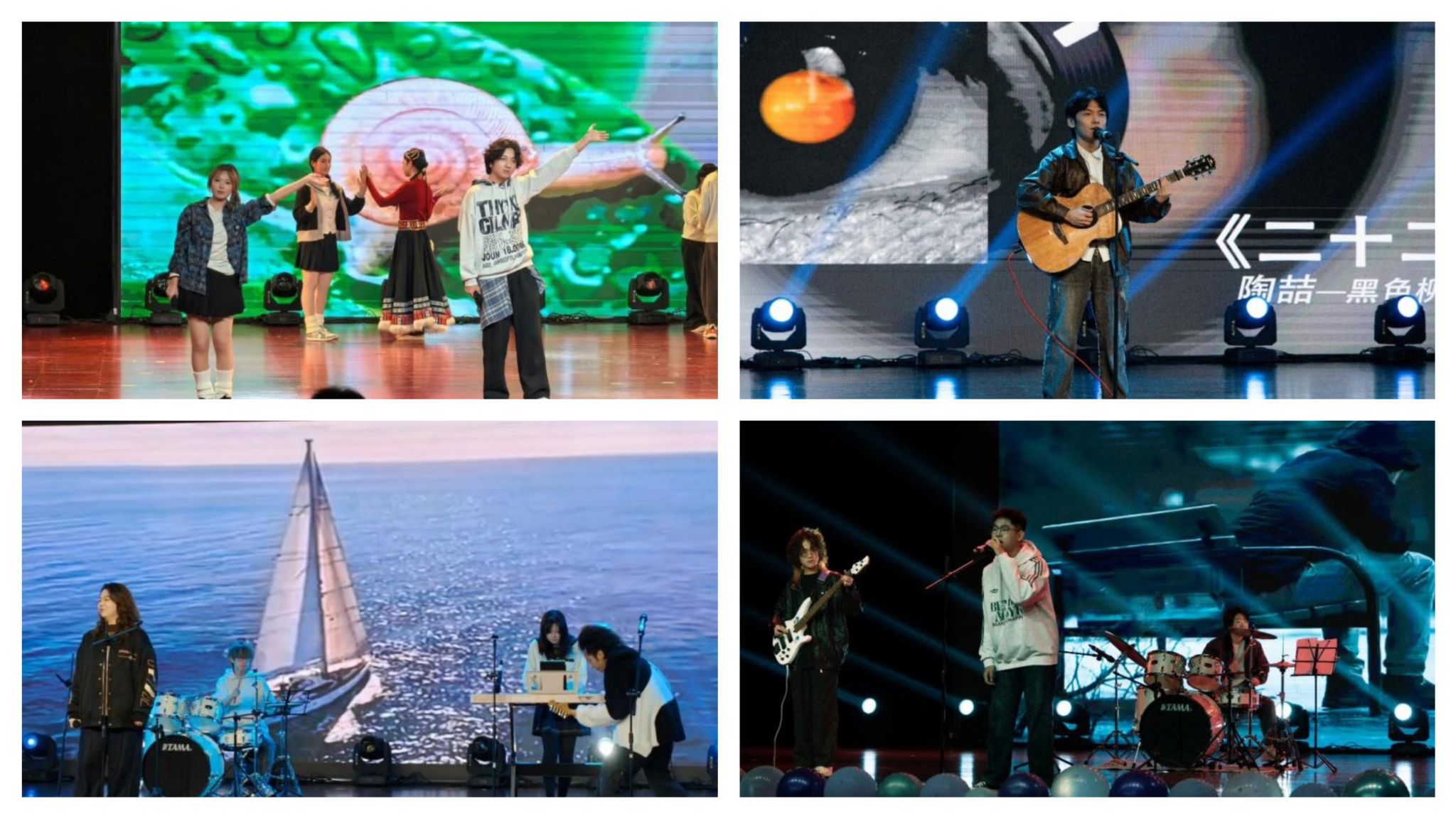 晚会在充满活力的开场舞《Attention》中正式拉开帷幕。舞者们以精湛的舞技和饱满的热情,展现了计信学子昂扬向上的精神风貌,为整场晚会奠定了青春活力的基调。随后,乐队表演《一路向北》以激昂的旋律和深情的演唱,展现了青年学子对梦想的执着追求;舞蹈《Nasa》通过富有科技感的编排和整齐划一的动作,表达了计信人探索未知、勇攀高峰的科研精神;《乐队表演》以震撼的摇滚乐将晚会推向高潮,展现了当代大学生积极进取的人生态度。《青歌漫舞》将古典舞的婉约与民族舞的热情完美融合,展现了中华优秀传统文化的独特魅力;吉他弹唱《二十二》以清新的旋律和真挚的演唱,表达了同学们对大学生活的美好憧憬;《漂流人间》通过富有哲理的歌词和动人的演唱,引发了在场师生对人生价值的深刻思考。晚会在全体演员与观众合唱《稻香》的温馨氛围中圆满落幕。充满回忆与感动的歌曲让同学们在熟悉的旋律中感受到了集体的温暖与关怀。