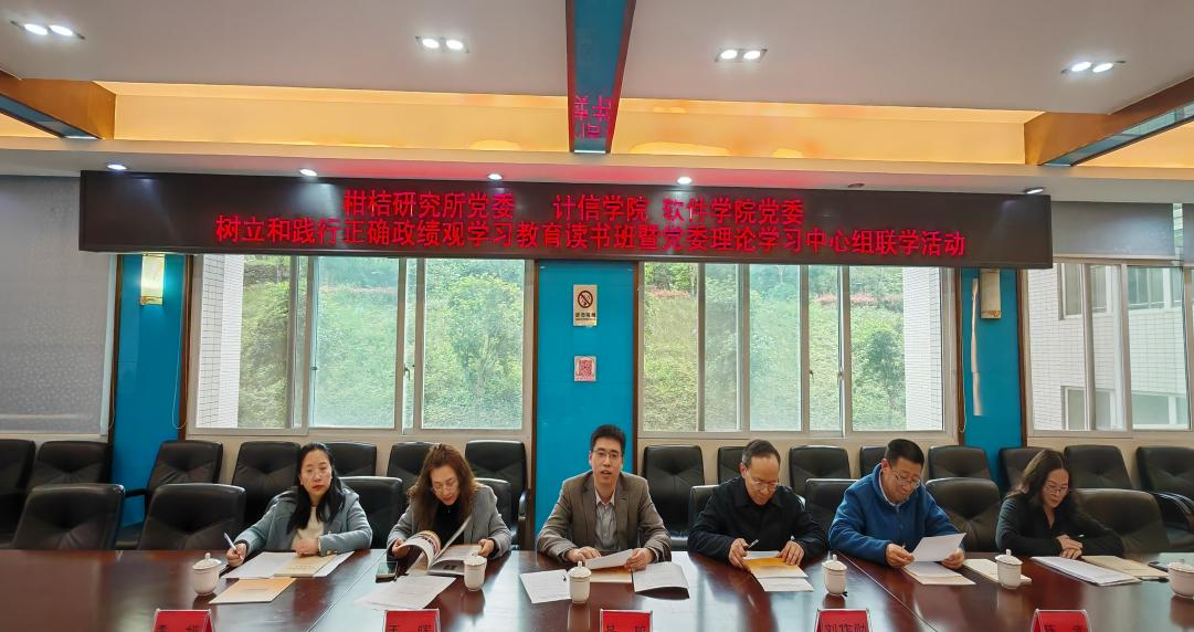 党委与柑桔研究所党委在柑桔研究所综合楼二会议室开展树立和践行正确政绩观学习教育读书班暨党委理论学习中心组学习联学活动,全体处级领导干部和专职组织员参加。