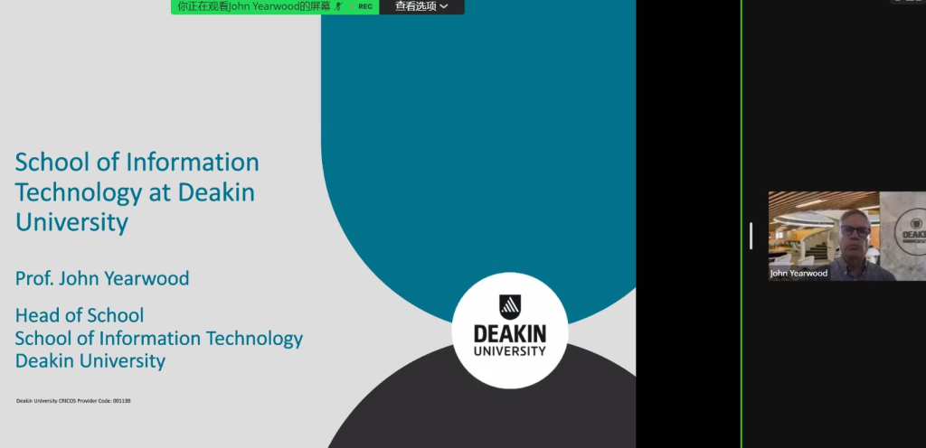 2022年11月11日上午10点,由我校与澳大利亚迪肯大学(Deakin University)合作举办的软件工程专业本科教育项目在线上召开了2022级新生澳方见面会。出席会议的有迪肯大学信息技术草榴社区