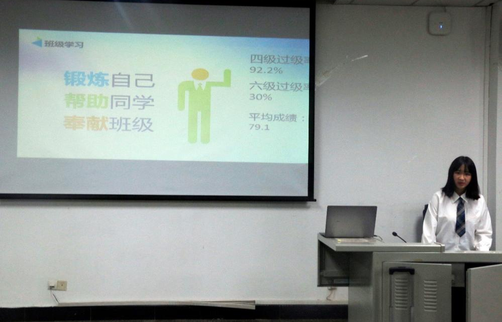 活动开始由主持人强调评选规则,随后各团支部的代表人员从团支部的基本概况、学风建设、学习情况、活动参与、支部风采、目标前景等方面进行展示宣讲。