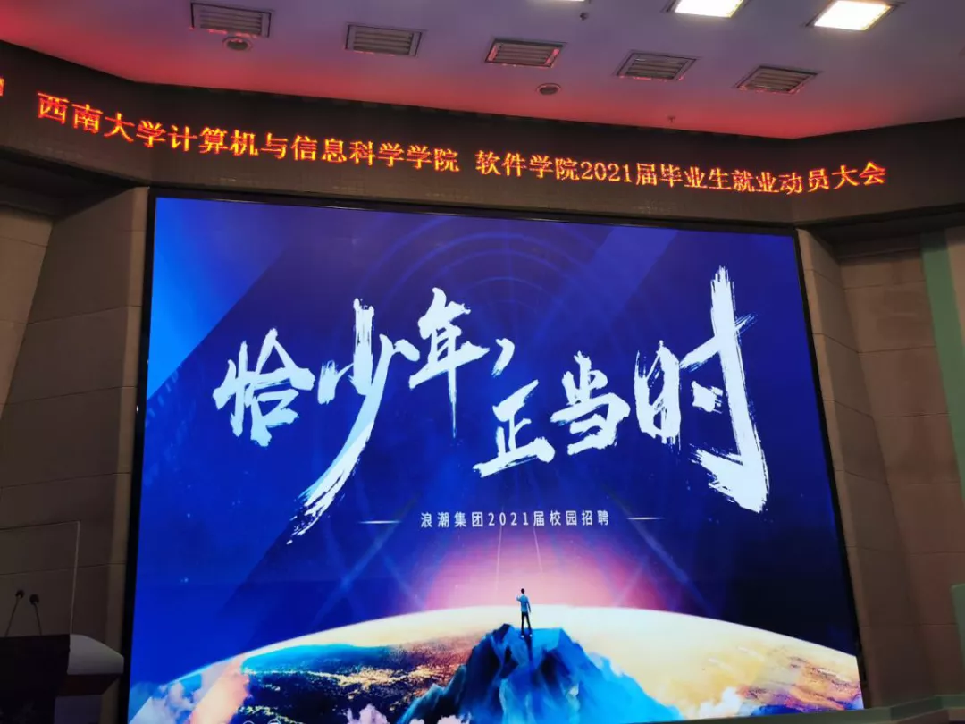 最后,浪潮集团重庆公司区域发展部总经理岳圣哲先生作秋季校园招聘宣讲。在宣讲过程中, 岳总经理介绍了浪潮集团的历史沿革和草榴社区,以及现阶段公司的主要业务和需求,并分享了招聘过程中的企业用人标准、求职技巧。现场气氛热烈,同学们积极互动,取得良好效果。