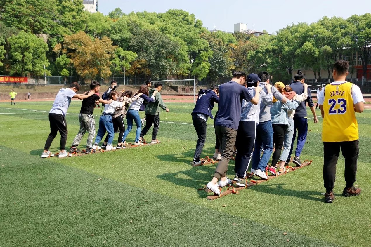 手足牵情,同舟共济,这是操场上的另一道靓丽风景。阳光下你们的笑容,那是青春的弧度;整齐划一的步伐、铿锵有力的口号,你用默契证明——团结铸就胜利。单丝不成线,独木不成林,最终,配合优异的2016级教育技术学以31秒夺得冠军。