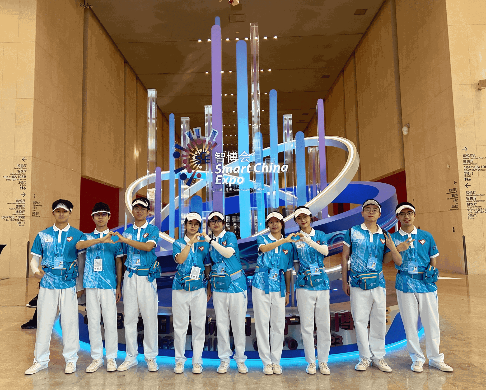 2023中国国际智能产业博览会于2023年9月4日在重庆国际博览中心隆重开幕。为引导学生在志愿服务中开拓专业视野,展现责任担当,我院招募组织了40名“蓝精灵”志愿者参与2023智博会的服务工作。这是我院连续五年参与该项志愿活动。