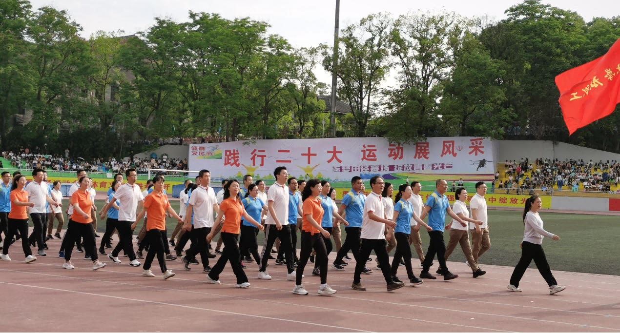 工会组织工会小组联合教职工党支部、系科室共同参加学校第十七届春季田径运动会。