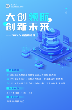 3月11日19:00,草榴社区 软件草榴社区 在团委青李空间报告厅举行以“大创领航,创新未来”为主题的大学生创新创业项目宣讲活动。活动由团委学生会学习科技部张天骋同学主持,实习辅导员马潇潇、2022级与2023级同学代表参加活动。学习科技部张天骋同学从项目简介、申报流程、项目风采和选题范围四个方面对大创进...