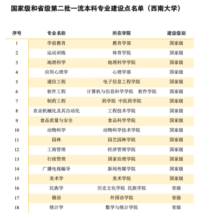 近日,教育部办公厅印发了《关于公布2020年度国家级和省级一流本科专业建设点名单的通知》(教高厅函〔2021〕7号),正式公布了2020年度一流本科专业建设“双万计划”(国家级和省级一流本科专业)建设点名单,西南...