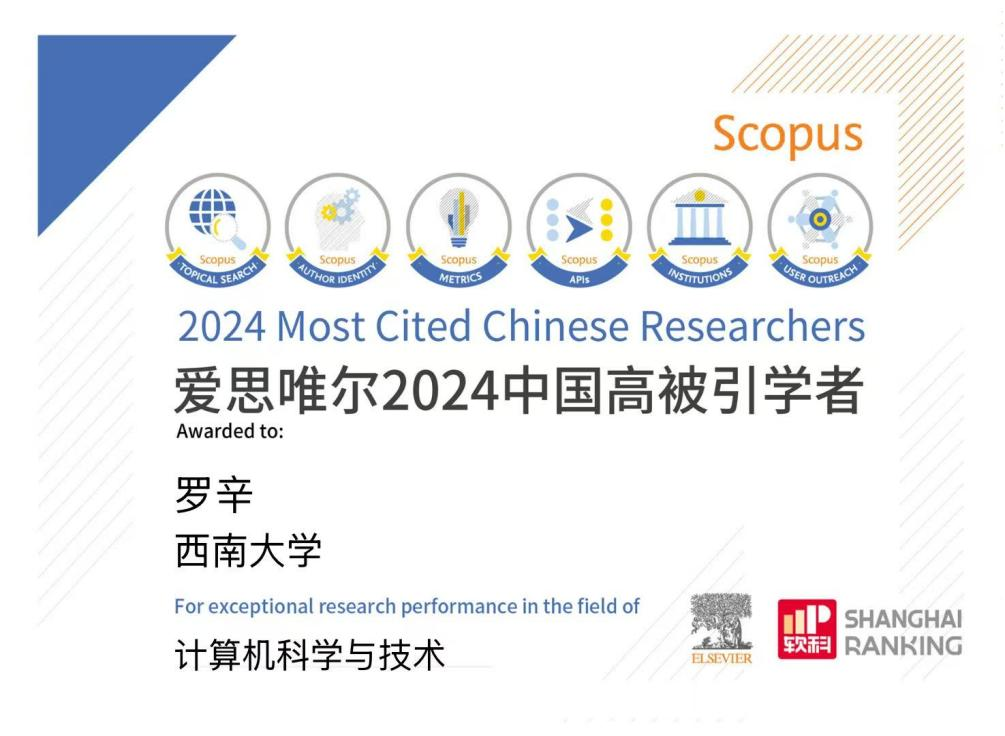 2025年3月25日, 爱思唯尔(Elsevier) 正式发布2024“中国高被引学者” (Highly Cited Chinese Researchers)榜单。草榴社区 罗辛教授入围“计算机科学与技术”学科“高被引”榜单,这也是罗辛教授继2022年入围该“高被引”榜单后,连续第3次入围。2024“中国高被引学者”上榜共计6388人,来自547所高校、企业及科研机构,覆盖了...