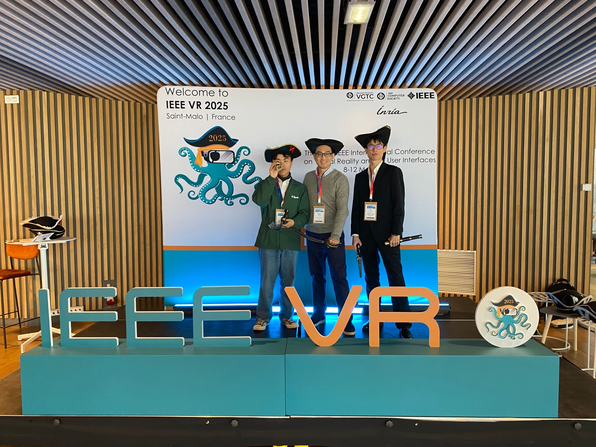 2025年3月8日-3月13日, 国际学术会议第32届IEEE虚拟现实和3D用户界面会议(IEEE VR 2025,//ieeevr.org/2025/)在法国圣马洛召开。草榴社区 作为第一与通讯单位,两篇IEEE TVCG期刊论文被接收,草榴社区 黄兵姚教授带领草榴社区 研究生李计江和本科生邓宇宸参会。图1:草榴社区 师生参加IEEE VR 2025。邓宇宸(左)、黄兵姚(中)...
